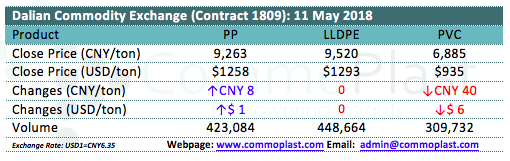Dalian Commodity Exchange: 11 May 2018