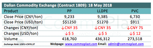 Dalian Commodity Exchange: 18 May 2018
