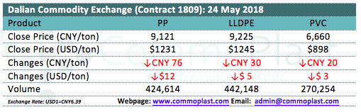 Dalian Commodity Exchange: 25 May 2018