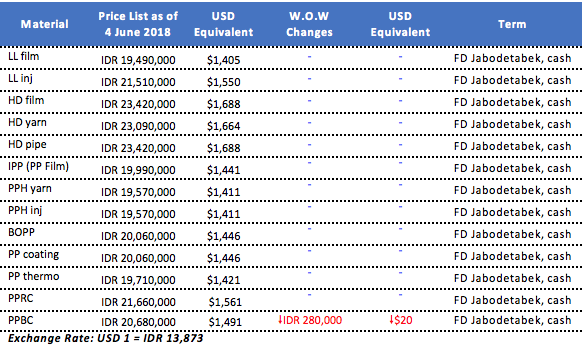 It is reported that a major Indonesian producer has announced fresh weekly PP and PE offers to local buyers at mostly unchanged levels from last week, except some $20/ton reduction on PP block copolymer grade. Demand in the country is now subsiding as most buyers are entering holiday mood given the fast-approaching Ramadan celebration.
