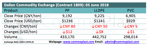 Contract number 1809 on Dalian Commodity Exchange on 06 June 2018 settled as following: