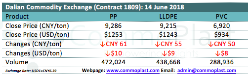 Dalian Commodity Exchange: 14 June 2018