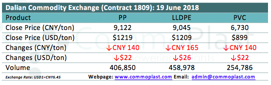 Dalian Commodity Exchange: 19 June 2018