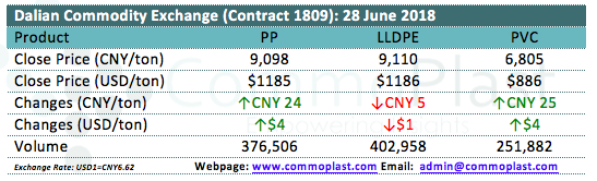 Contract number 1809 on Dalian Commodity Exchange on 28 June 2018 settled as following: