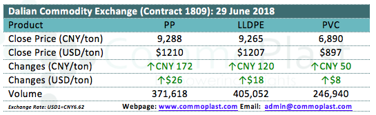 Contract number 1809 on Dalian Commodity Exchange on 29 June 2018 settled as following:
