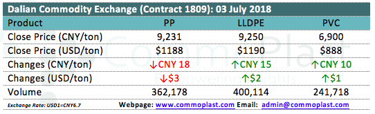 Contract number 1809 on Dalian Commodity Exchange on 03 July 2018 settled as following: