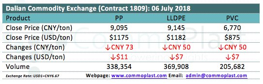 Dalian Commodity Exchange: 06 July 2018