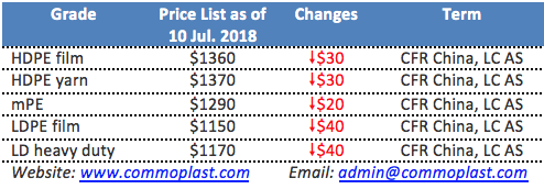 Chinese players reported receiving fresh weekly offers for PE from a major Thailand producer with up to $40/ton reduction. The latest price cuts continue to highlight the weak demand condition in Asia’s largest buyers.