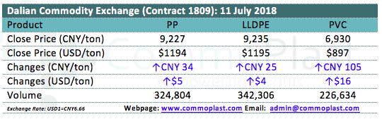 Dalian Commodity Exchange: 11 July 2018
