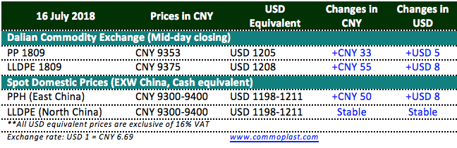 Total inventories at Sinopec and CNPC’s warehouses pile up 70,000 tons over the weekend to approximate 735,000 tons as of 16 July 2018.