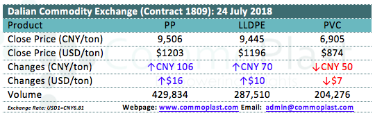 Dalian Commodity Exchange: 24 July 2018