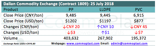 Dalian Commodity Exchange: 25 July 2018