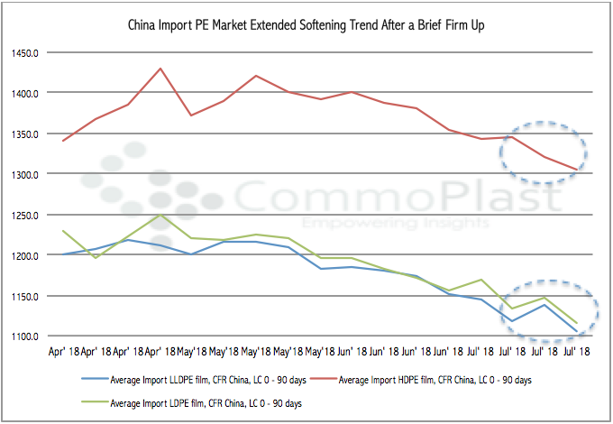 Market players were made believed firmly that import PE to China has found the cyclical bottom in early July as international suppliers refused to give additional discounts after healthy sales result during this period of time. The signal turned out to be a fault as international sellers introduced fresh cuts in line with the appreciation of the US dollars.