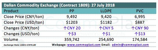Dalian Commodity Exchange: 27 July 2018