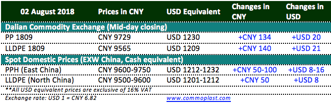It is the high tide for Dalian Commodity Exchange this morning that send September delivery contract for PP to the highest level seen since 2014. Spot ground again found a positive support for additional prices hike.