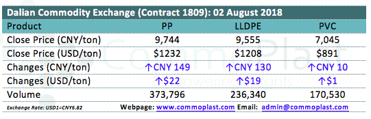 Dalian Commodity Exchange: 02 August 2018