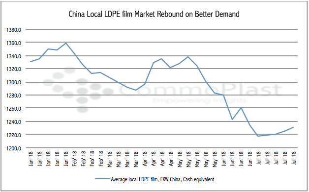 It has been pretty depressed for the domestic LDPE film in China over the past two months as an effect of weaker demand from the packaging and agricultural film sector. Looking at the scale, domestic LDPE film based on EXW China, cash equivalent loss approximate USD120/ton as of mid-July compared to the cyclical peak during early May.