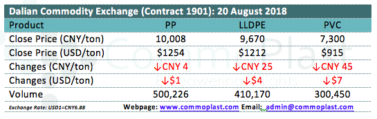 Dalian Commodity Exchange: 20 August 2018