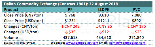 Dalian Commodity Exchange: 22 August 2018