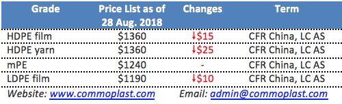 A major Thailand producer reportedly stepped back on PE offers to China this week after the effort to lift offers in the previous week bumped into stiff resistance. The reductions mostly focus on HDPE and LDPE cargoes, while no LLDPE film quantity available this week.