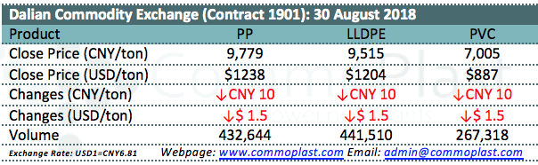 Dalian Commodity Exchange: 30 August 2018