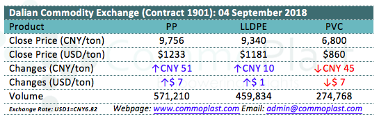 Dalian Commodity Exchange: 04 September 2018