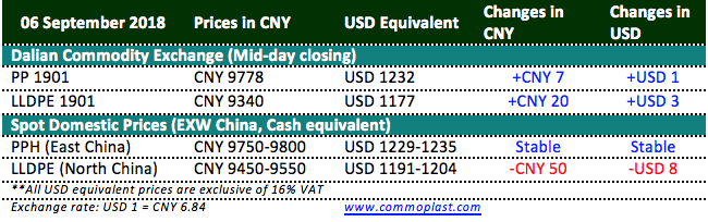 Total inventories at Sinopec and CNPC’s warehouses reduced 15,000 tons from yesterday at 765,000 tons as on 06 September 2018.
