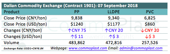 Contract number 1901 on Dalian Commodity Exchange on 07 September 2018 settled as following: