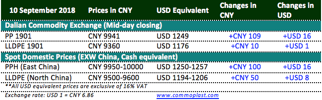 Dalian Commodity Exchange poses firm stance especially PP throughout the morning session. Details on the spot and futures prices are shown in the following table: