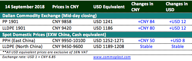 Total inventories at Sinopec and CNPC’s warehouses digested 20,000 tons from the previous day to 700,000 tons as on 14 September 2018.