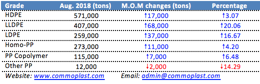 The latest data from the Chinese Custom Department showed a strong surge in import arrival for both PP and PE to China in the month of August 2018, particularly LLDPE and LDPE grade.