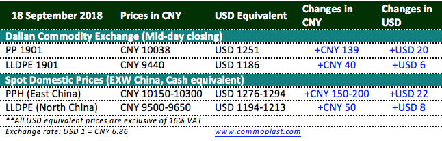 More customers come back to ask for offers, especially for homo-PP following the persistent firmness in the futures market. Sources said this could be the beginning of the pre-holiday replenishment campaign and decided to lift spot prices to reflect the market condition.