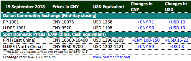 Total inventories at Sinopec and CNPC’s warehouses digested another 40,000 tons from yesterday to 670,000 tons as on 19 September 2018.
