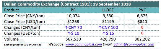 Contract number 1901 on Dalian Commodity Exchange on 19 September 2018 settled as following: