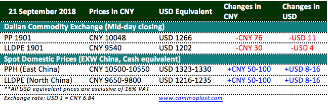 Total inventories at Sinopec and CNPC’s warehouses dropped 30,000 tons from the previous day to 620,000 tons as on 21 September 2018.