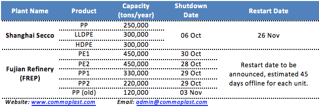 Shanghai Secco and FREP to have major maintenance shutdown in Q4
