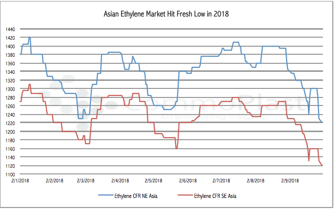 The Asian ethylene market hit the fresh low in 2018 this week in the absence of Chinese buyers while supply seems improving as a result of the widely present of spot cargoes.