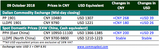 Sentiment in the domestic spot market remains healthy. Buyers are aggressively looking for homo-PP cargoes to meet immediate production need, which coupled with supply tightness has boosted prices to the new high for the year.