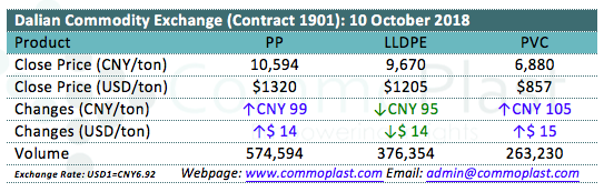 Contract number 1901 on Dalian Commodity Exchange on 10 October 2018 settled as following: