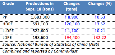 China PP and PE productions mixed in September: Statistics