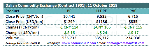 Dalian Commodity Exchange: 11 October 2018
