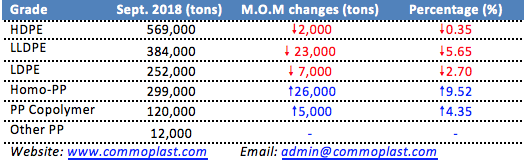 Statistics: China's import arrival for PE dipped in September; PP mostly increased
