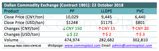 Contract number 1901 on Dalian Commodity Exchange on 22 October 2018 settled as following: