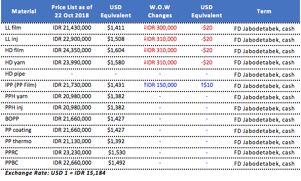 It is reported that a major local producer in Indonesia has announced fresh PP and PE offers to domestic with $20/ton reduction on PE cargoes while keeping PP prices on the stable to firmer track.