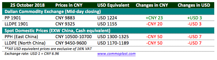 Total inventories at Sinopec and CNPC’s warehouses reduced 5,000 tons from yesterday at 755,000 tons as on 26 October 2018.