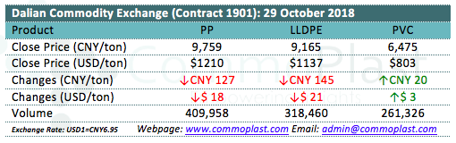 Dalian Commodity Exchange: 29 October 2018