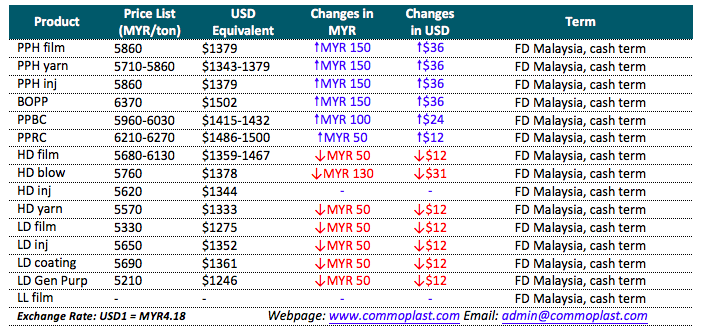 Malaysian producer announced November delivery PP, PE offers to local market