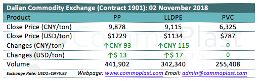 Dalian Commodity Exchange: 02 November 2018