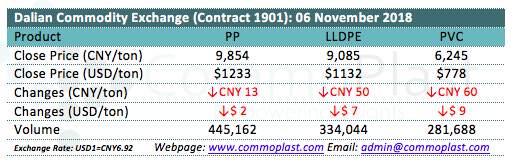 Dalian Commodity Exchange: 06 November 2018