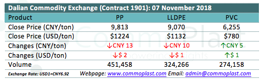 Dalian Commodity Exchange: 07 November 2018